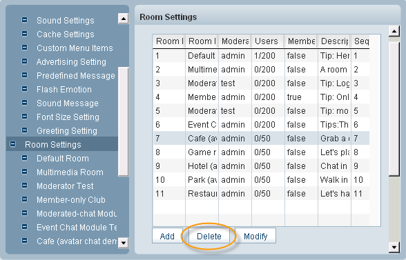 123 Flash Chat User ManualIf you need to delete a room, you can simply click the room and press Delete button. Related links: