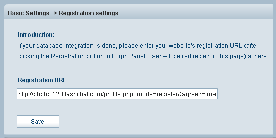 If your database integration is done, and you need your user to register at your website's registration page, you can enter its URL at here.