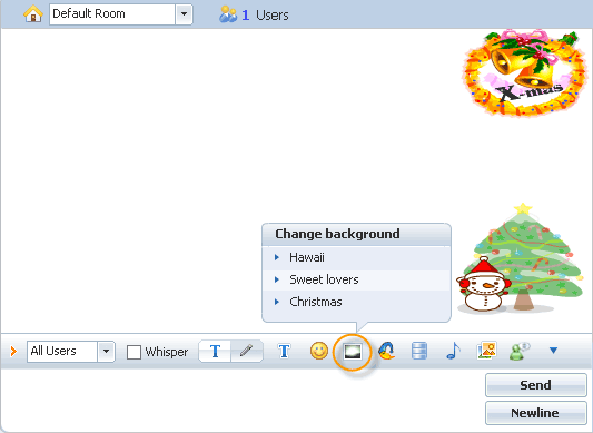 Visible background selection button With this feature enabled, a user can not select background when they chat to keep all rooms' look identical, disabled to make room looks more variable.