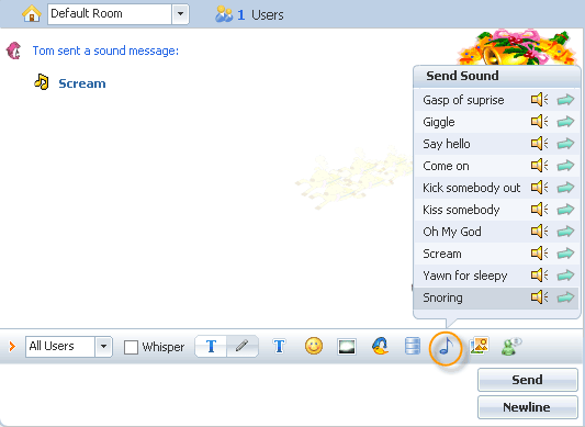 Enable the sound message button to allow voice message in chat With this featured enabled, a user can use sound message in chat room.