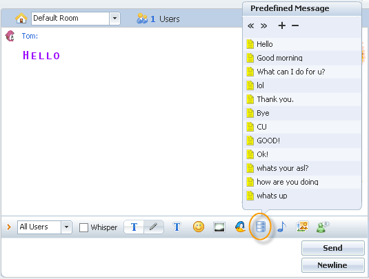 Show predefined message button With this feature enabled, a user can use predefined message in chat to save time.