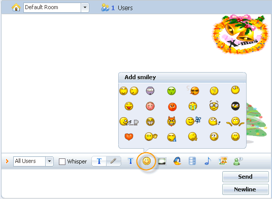 Visible smiley selector button for conversation With this featured enabled, a user can add smiley in his chat.