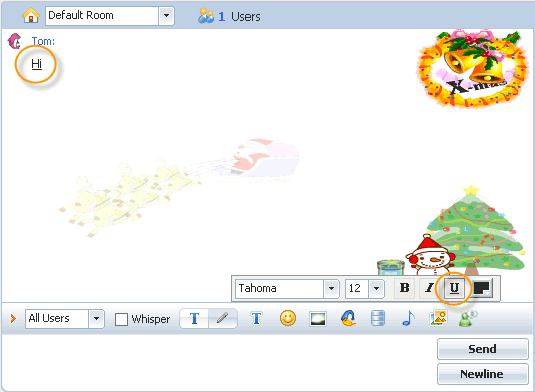 Enable the 'Underline' button for chat input area With this feature enabled, a user can underline a string in his chat.