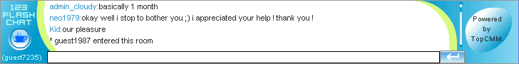 Have you ever thought of embedding a mini-chatroom to your webpage to establish connections between your business and visitors? TopCMM 123flashchat now presents the new solution, a chat module that can be used for Pocket PC or Banner Chat. It's small and neat, it looks like an animation but has full chat features(sending and receiving message in chat lobby, etc.), it can be put in any webpage( if necessary) of your site.